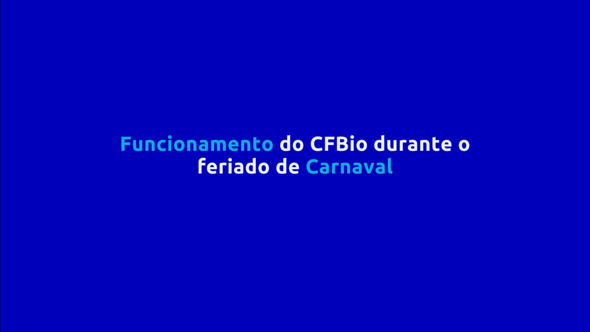 Informamos que não haverá expediente no CFBio de 16 a 18 de fevereiro (até as 12h) devido ao feriado de Carnaval em Brasília. O atendimento será retomado na quarta-feira, 18 de fevereiro, a partir das 12h.